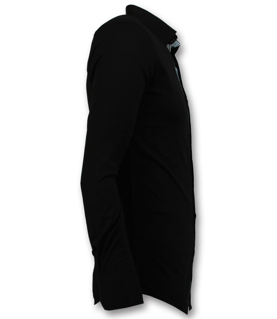 Blusa Italiana en Blanco Hombre - Men Camisas Entalladas - 3036 - Negro