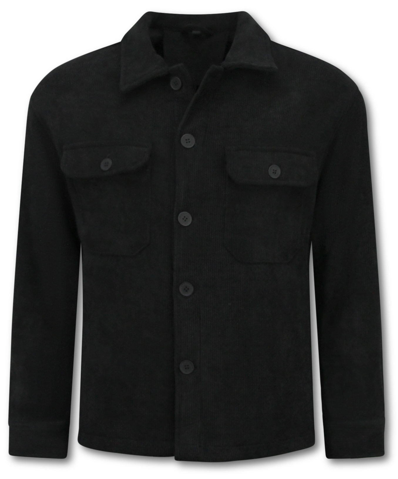 Camisa de franela con bolsillos para hombre - Chaqueta de hombre - Chaqueta de peso medio para hombre - 520 - Negra