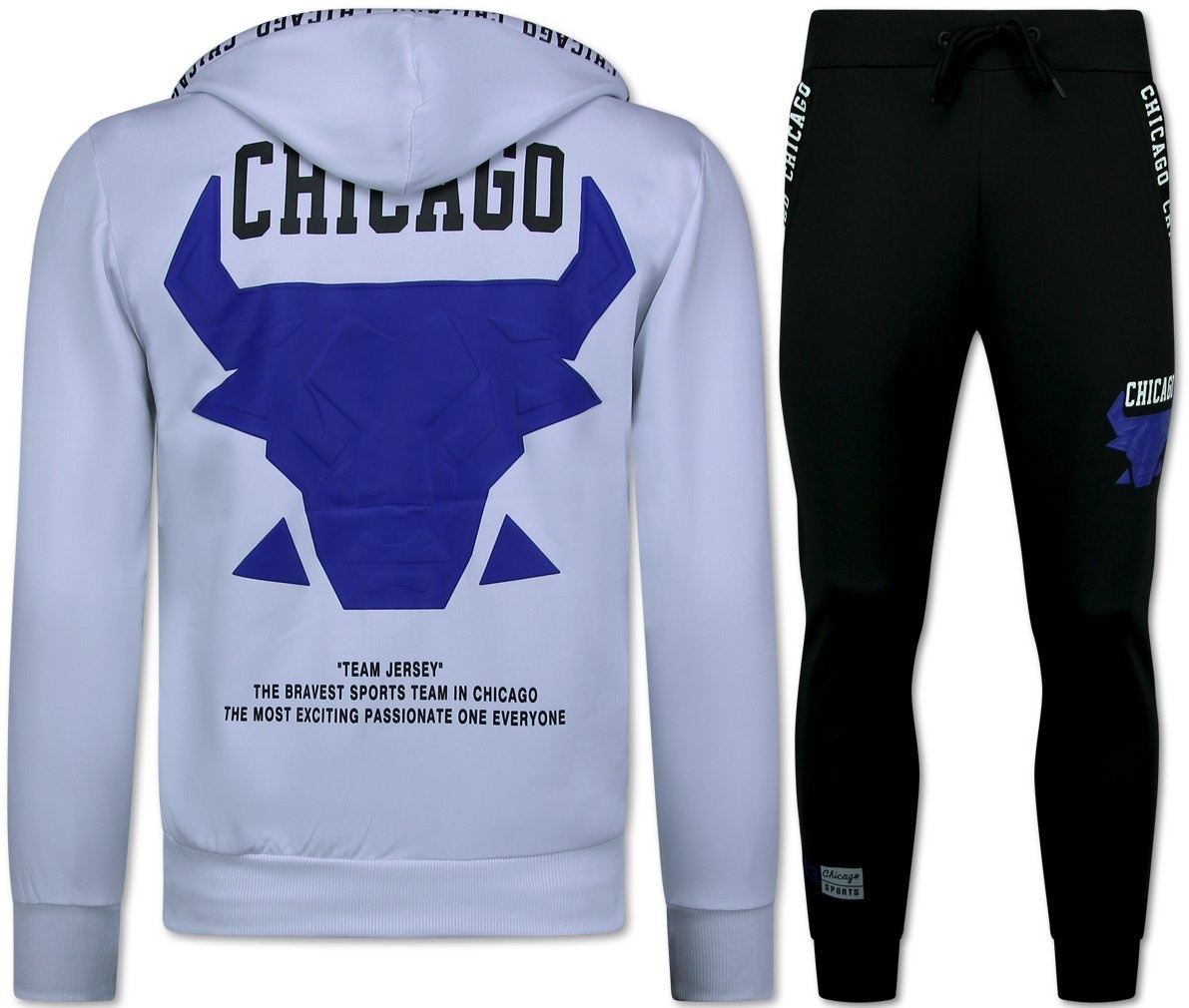 Chándal Chicago para hombre - Traje deportivo Bull para hombre - Traje de entrenamiento para adultos - 5231 - Blanco