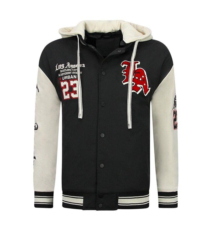 Chaqueta de béisbol extragrande con capucha - Chaqueta bomber para hombre - 523 - Negra