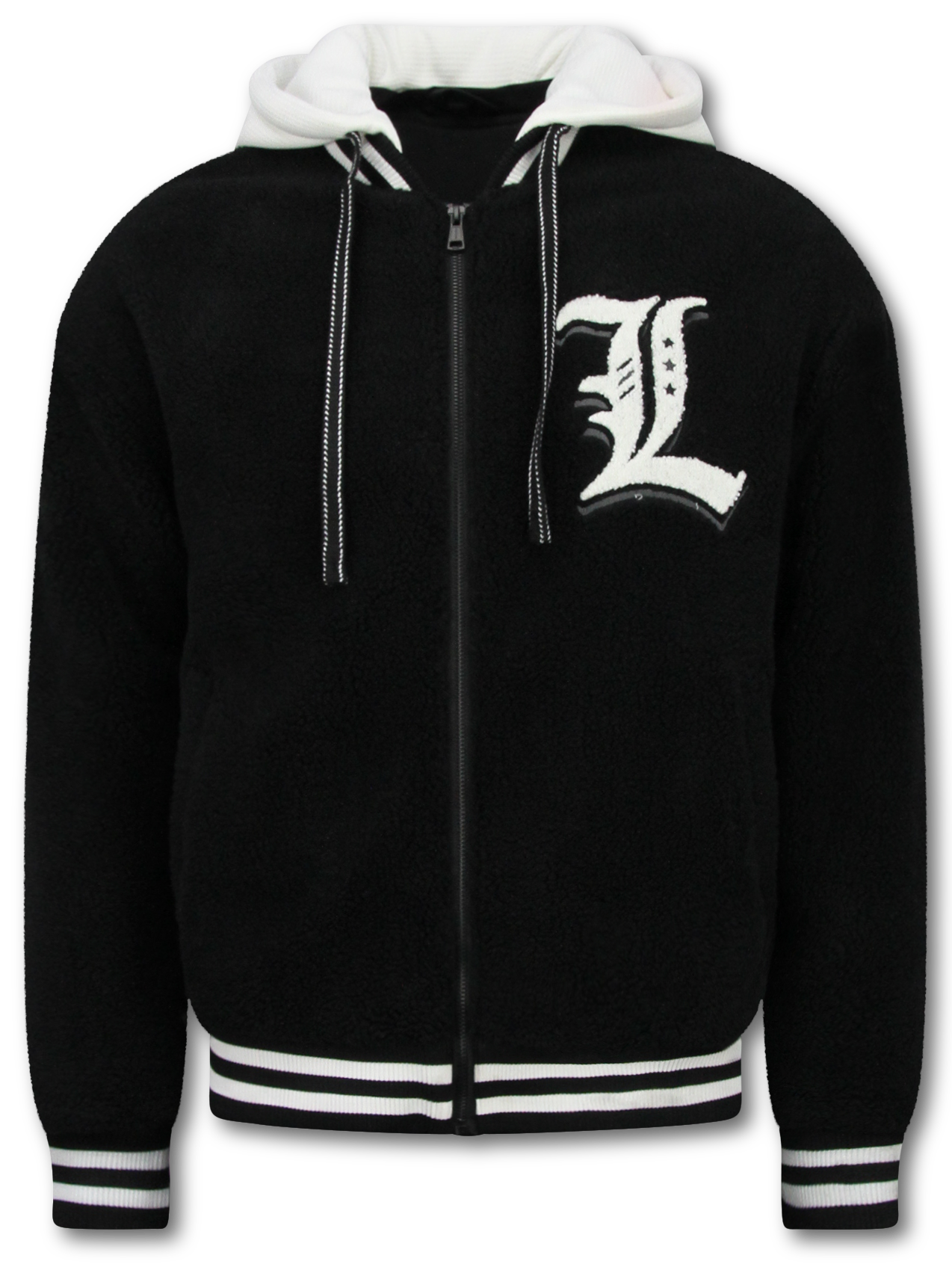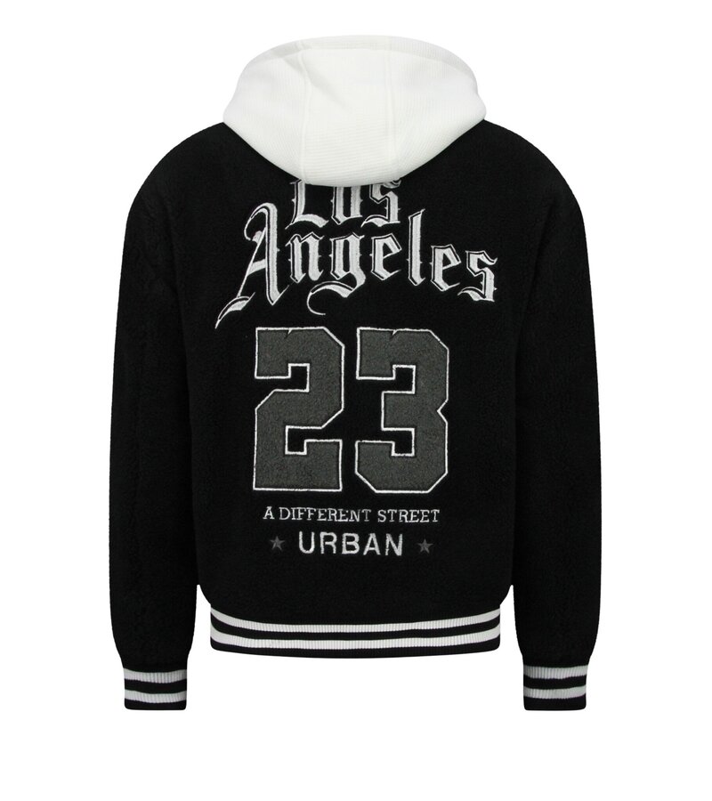 Chaqueta de béisbol extragrande - Chaqueta de peluche con capucha para hombre - Chaqueta de peso medio para hombre - 537 - Negra