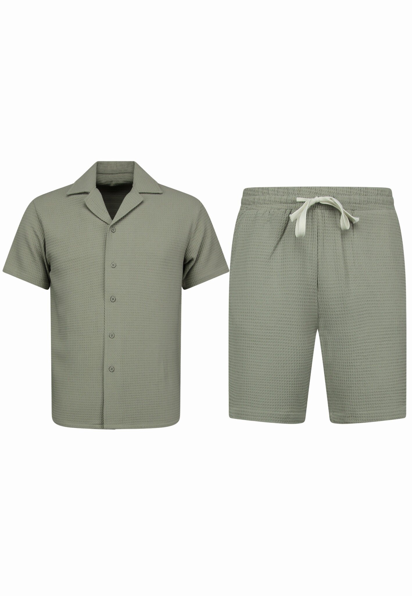 Camisa oversize acanalada - Conjunto de verano para hombre - Conjunto de dos piezas - Conjunto - 0095 - Gris