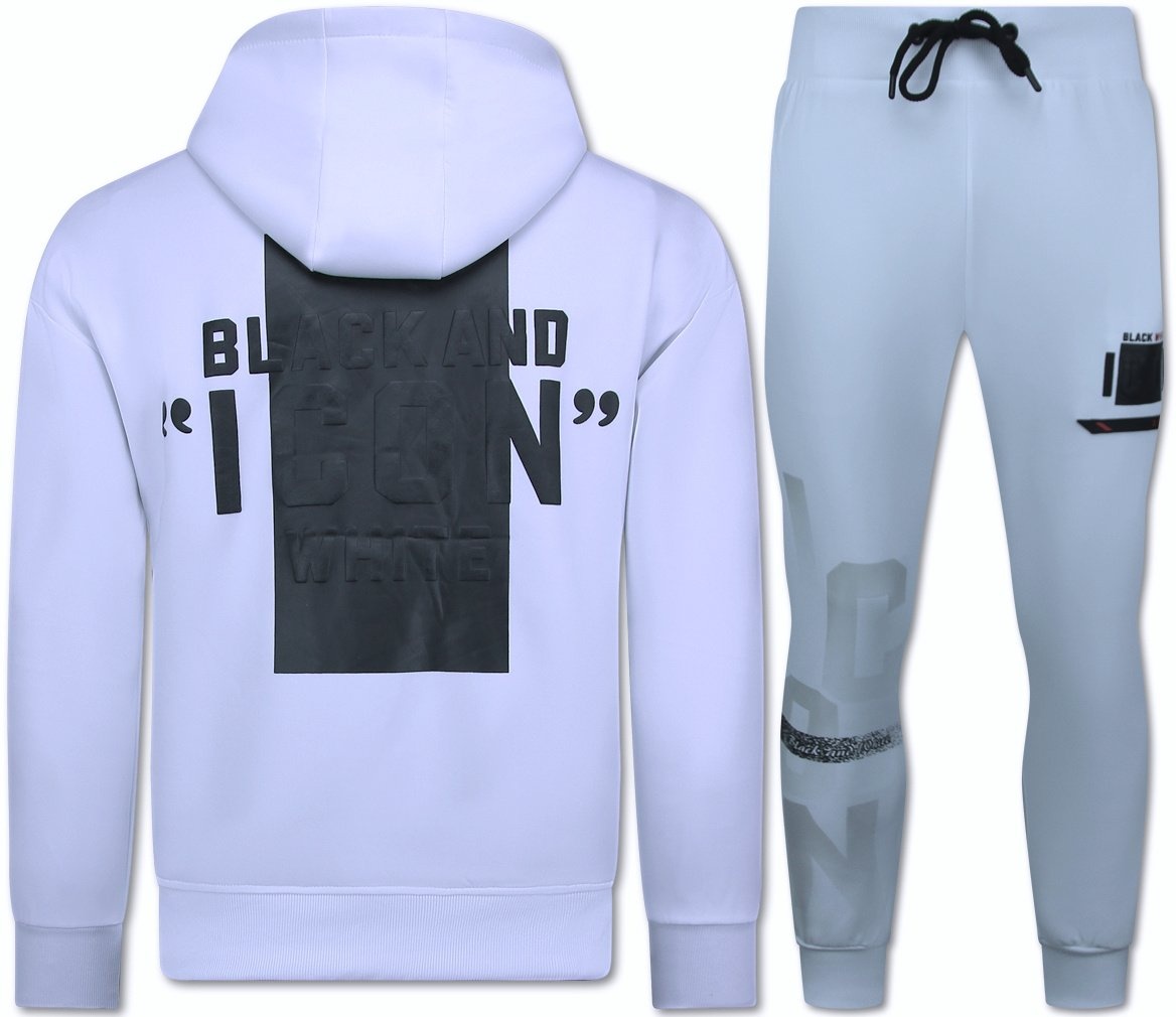 Conjunto de chándal ICON con estampado negro para hombre y adulto - Chándal para hombre - Conjunto de chándal - 3789 - Blanco