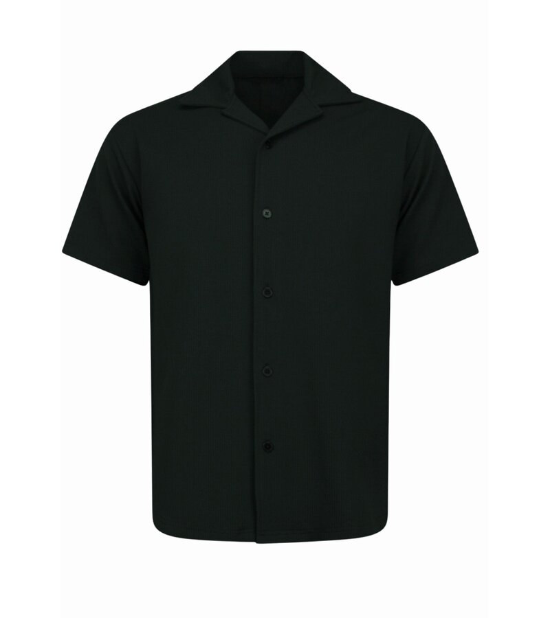 Conjunto de dos piezas - Camisa holgada de canalé - Conjunto de verano para hombre - Conjunto de dos piezas - Conjunto a juego - F-915 - Negro