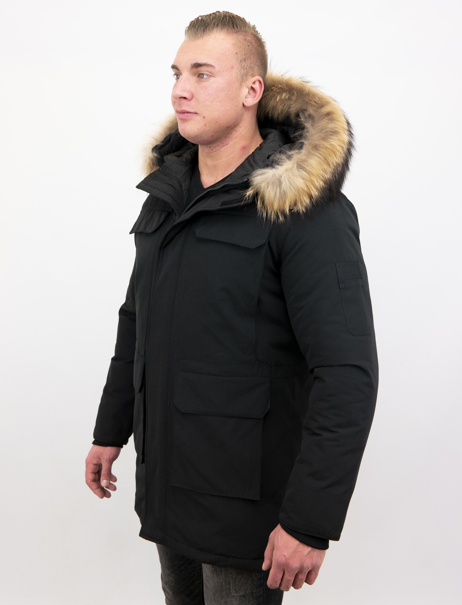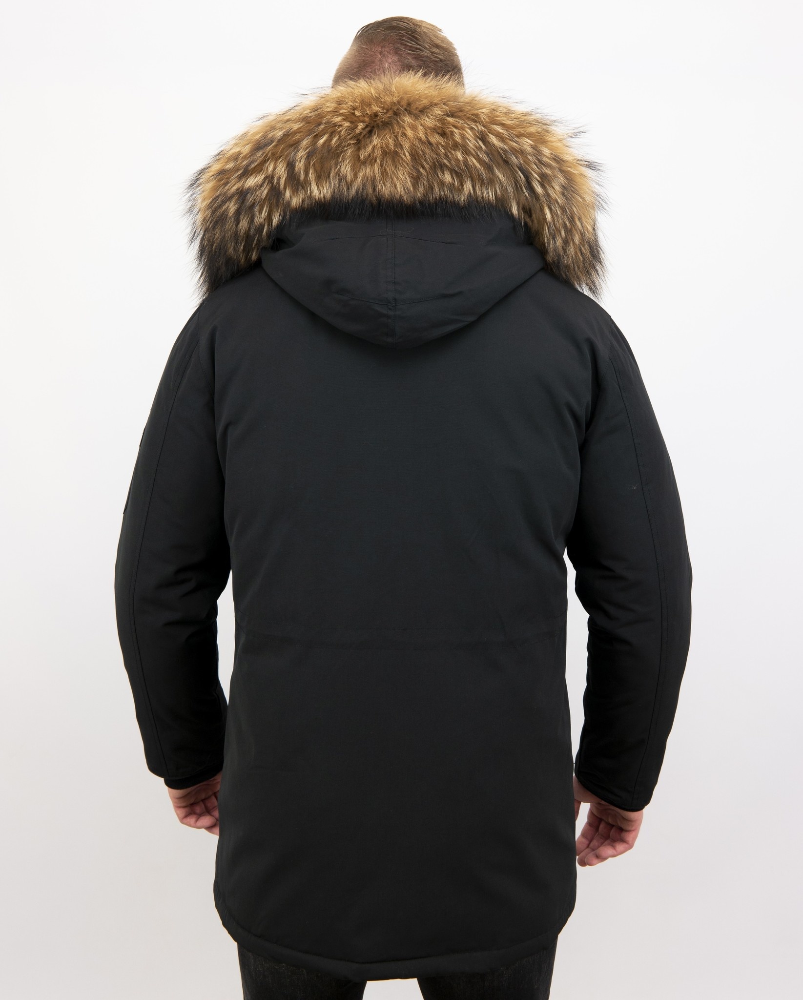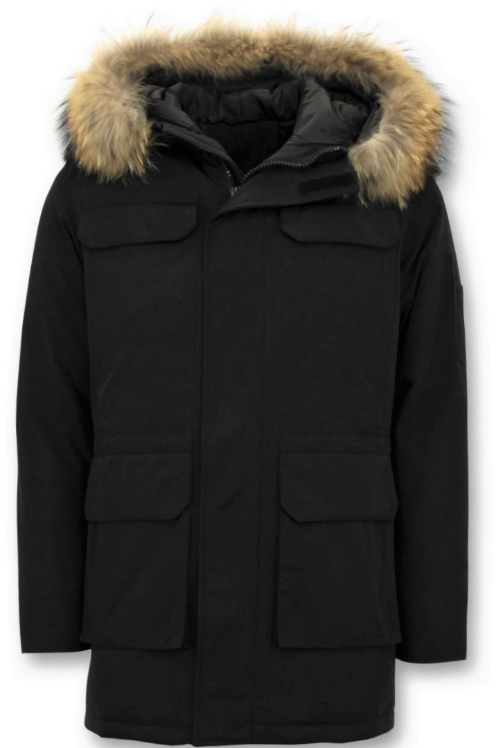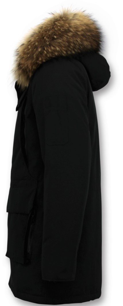 Parka Chaqueta de invierno - Cuello Grande De Piel Real - Negro