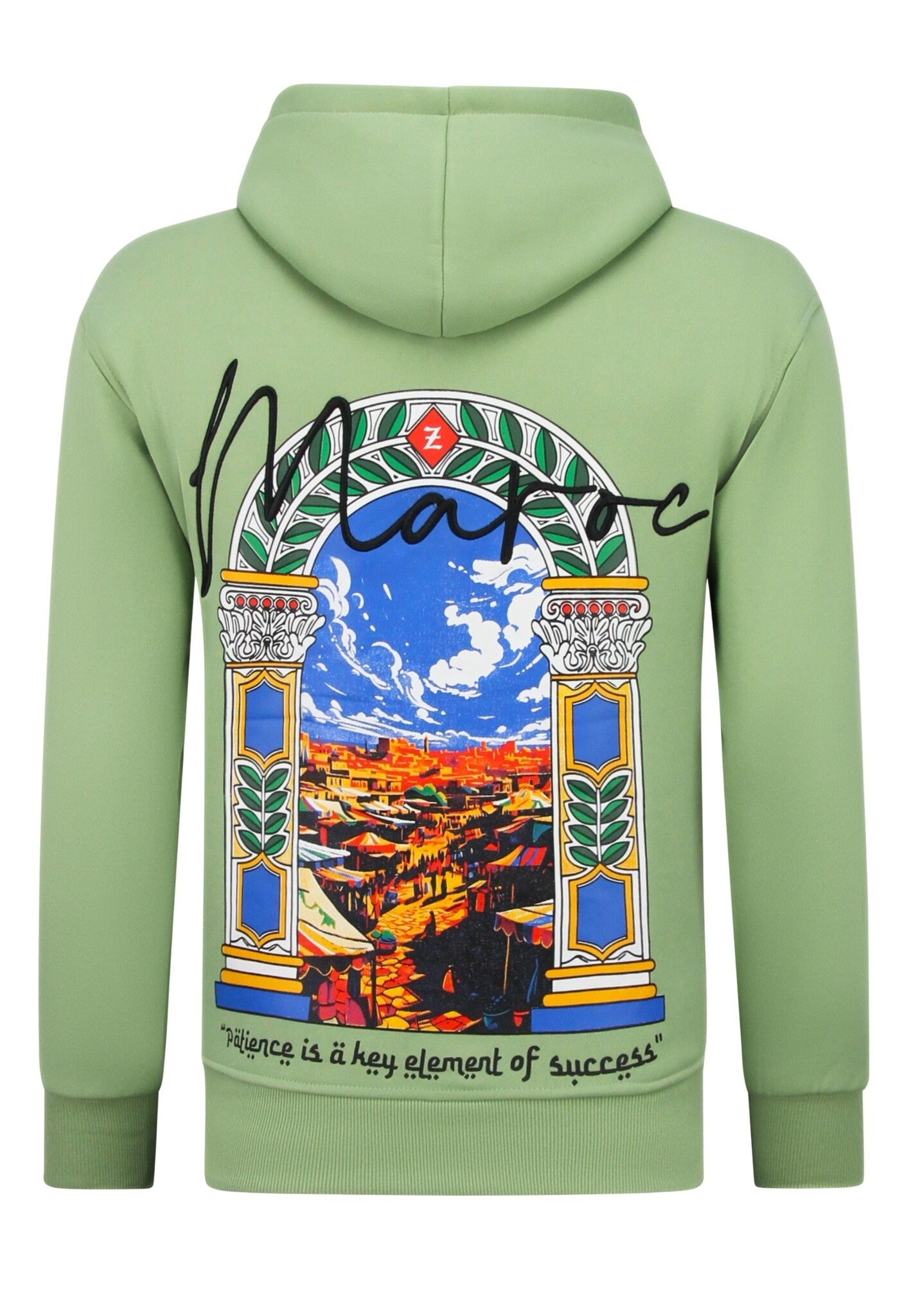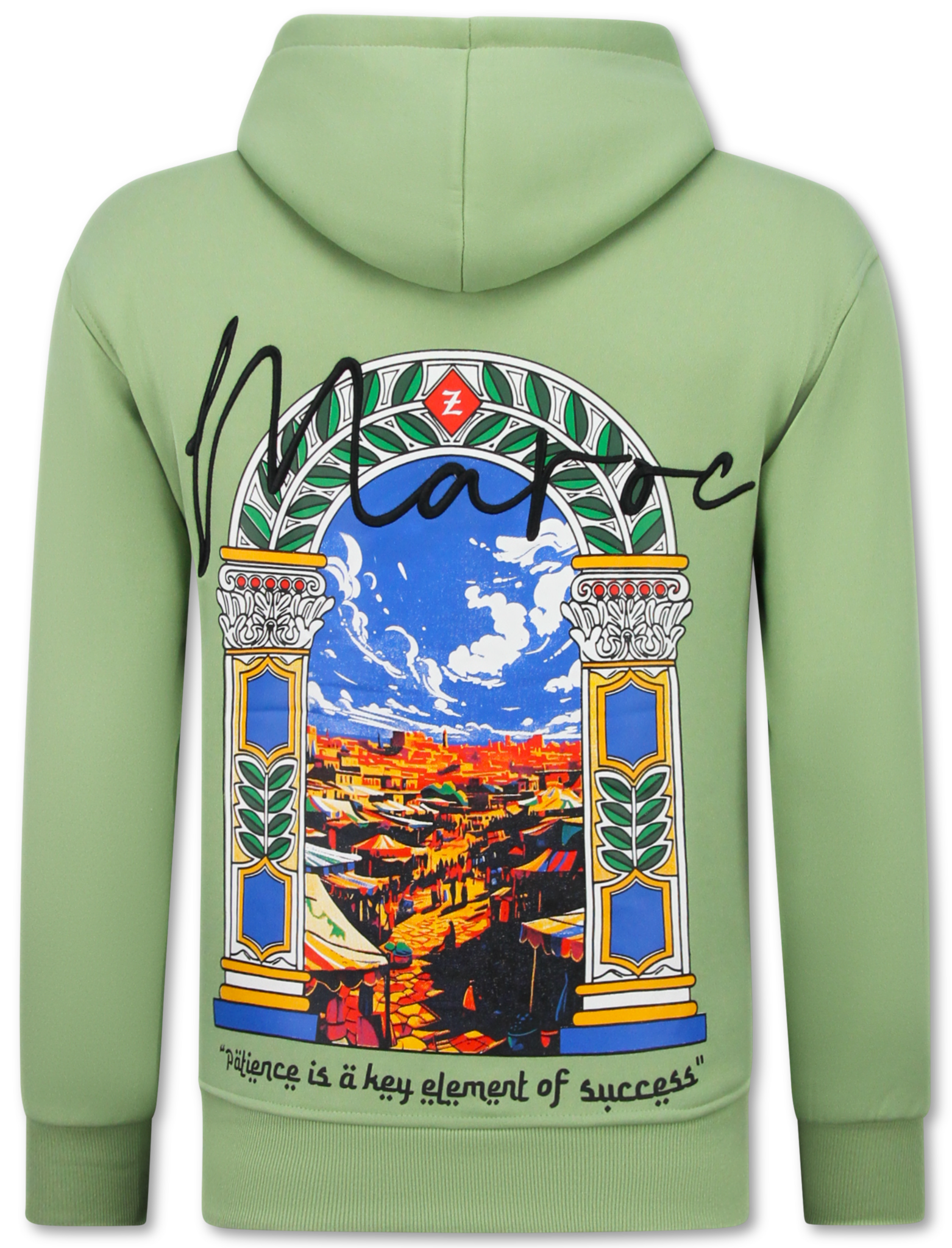Sudadera con capucha extragrande para hombre - Estampado marroquí - Tejido grueso - 5818 - Verde