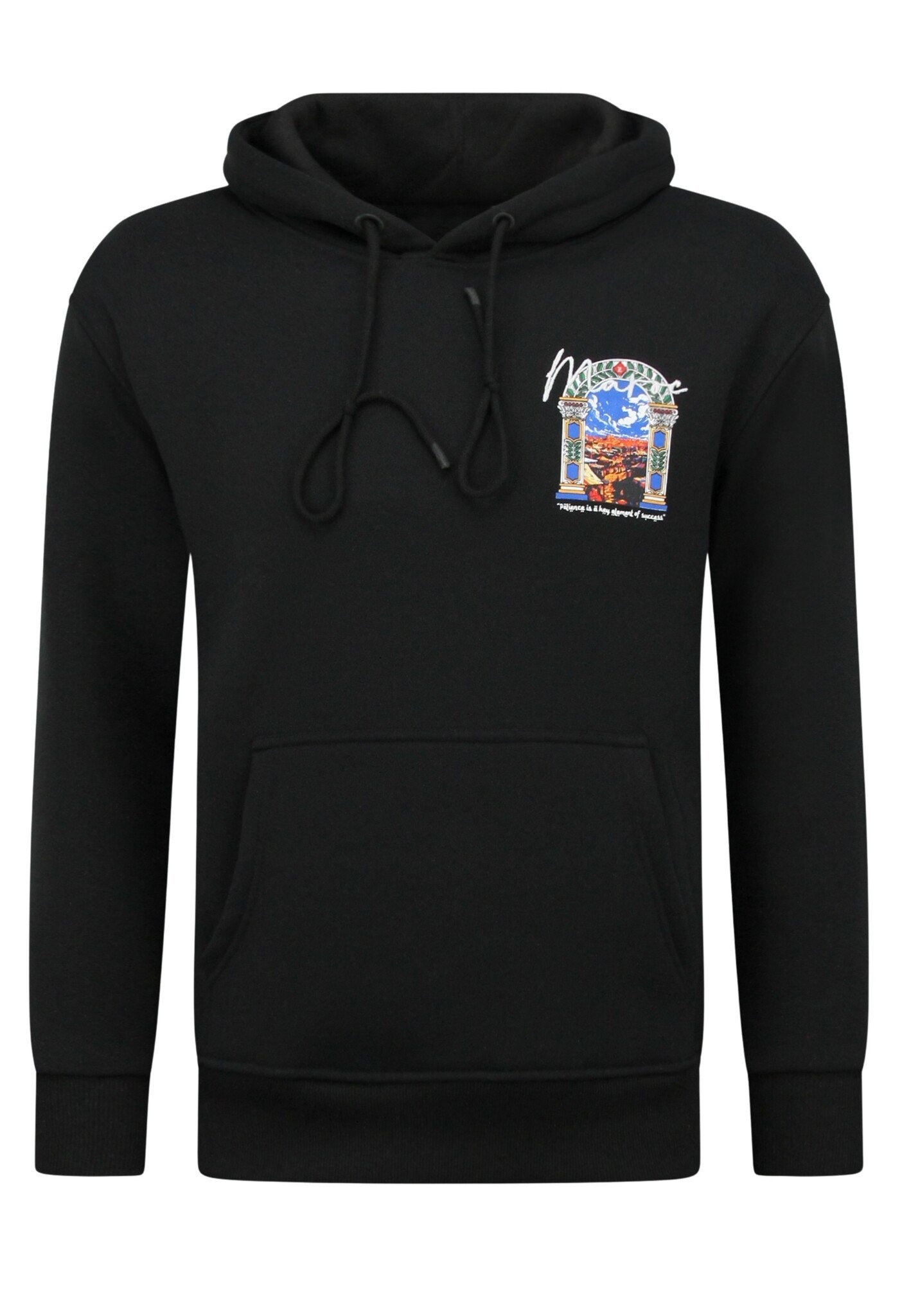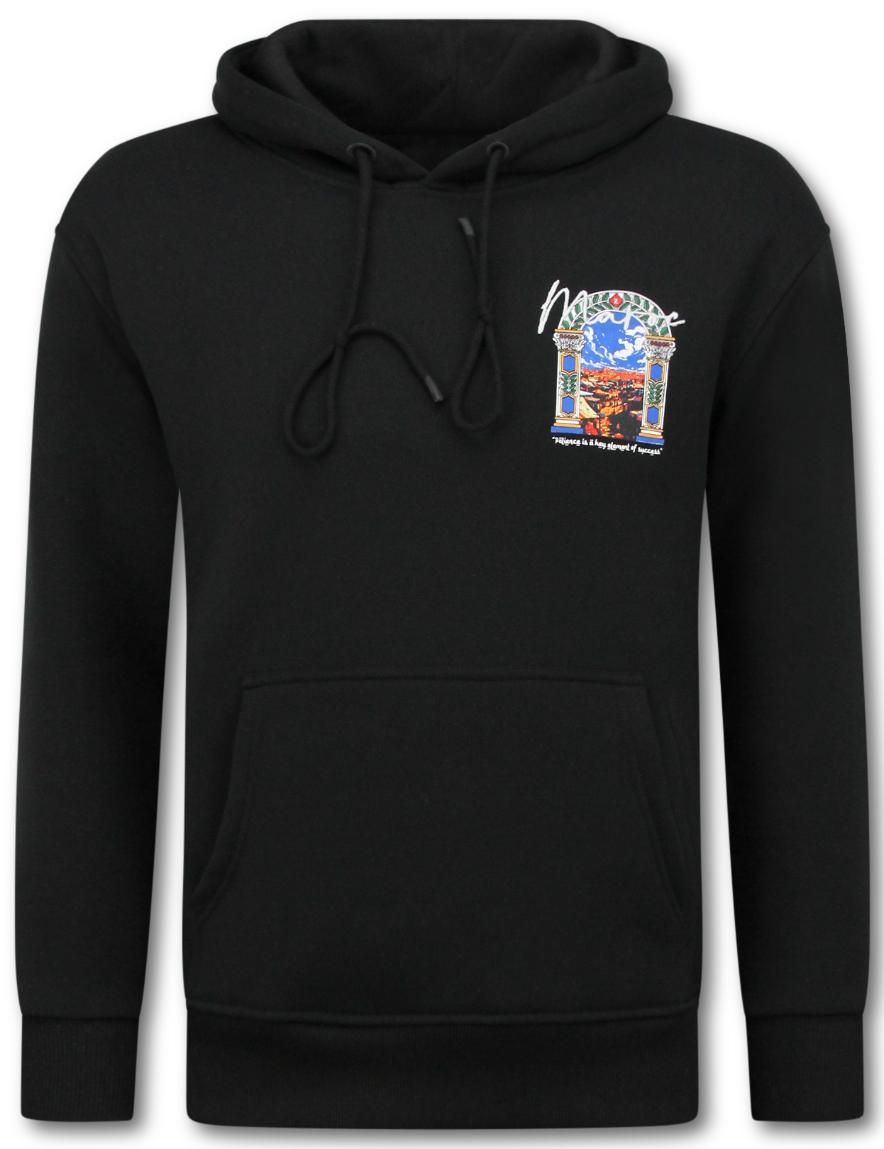 Sudadera con capucha extragrande para hombre - Estampado marroquí - Tejido grueso - 5818 - Negro