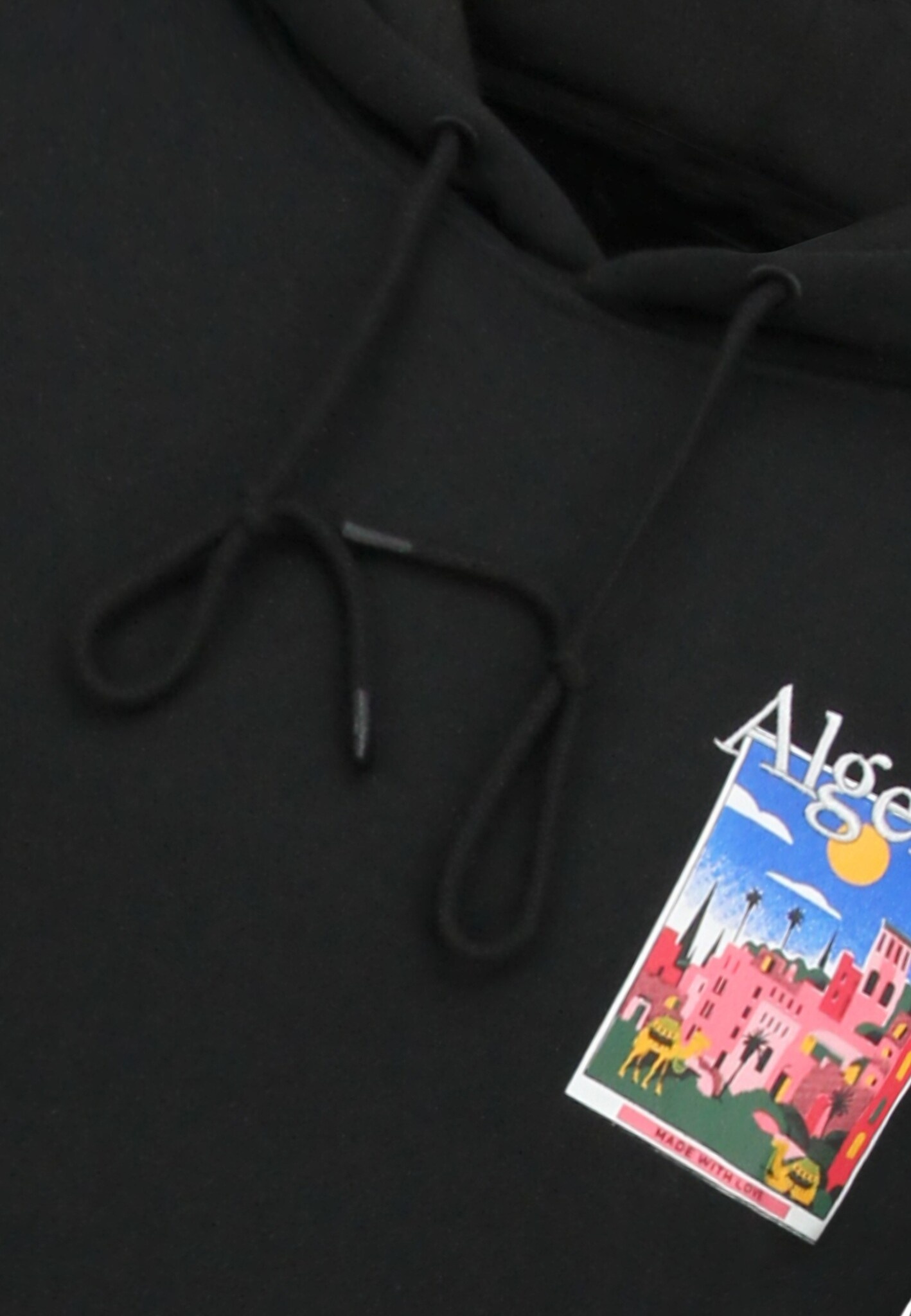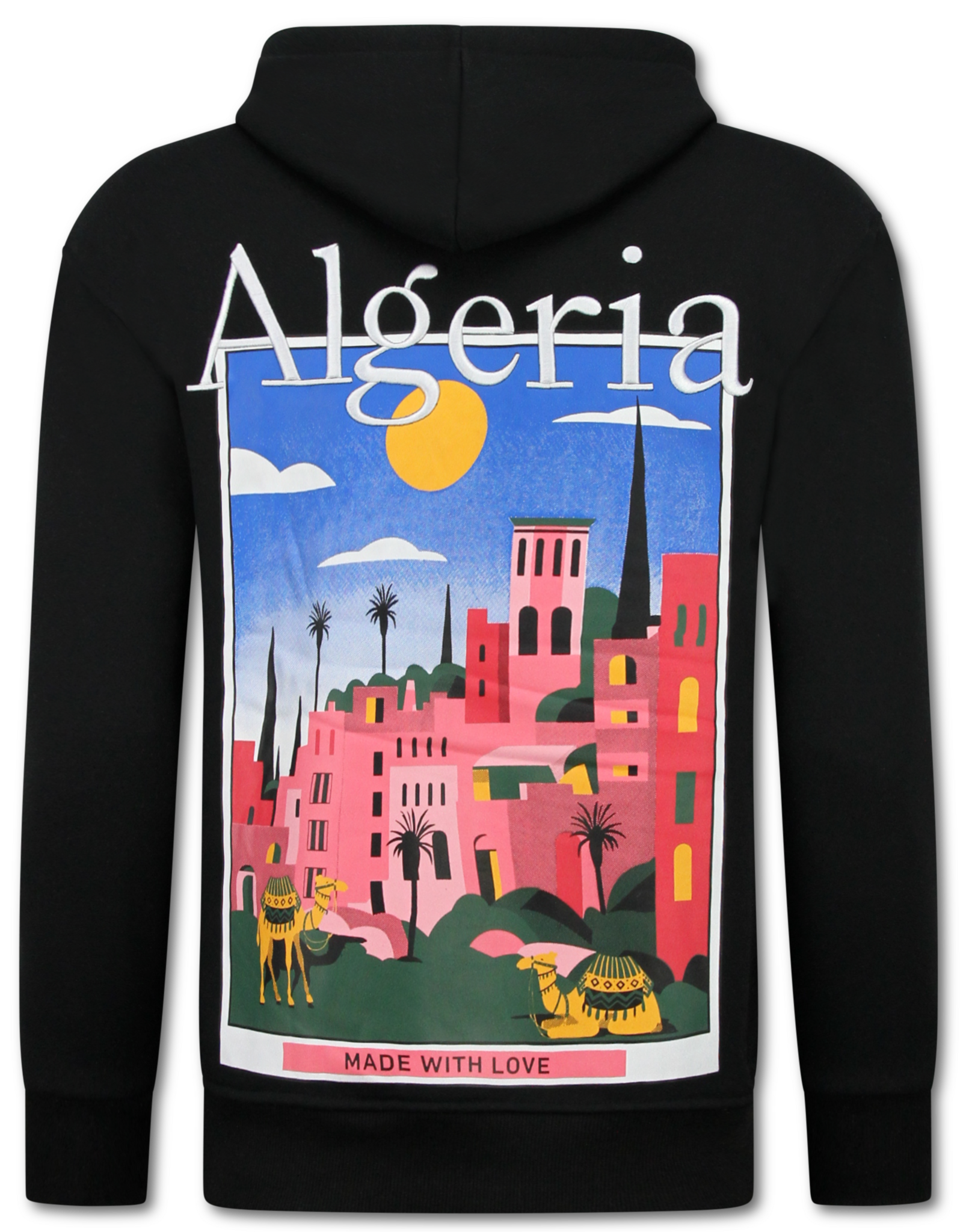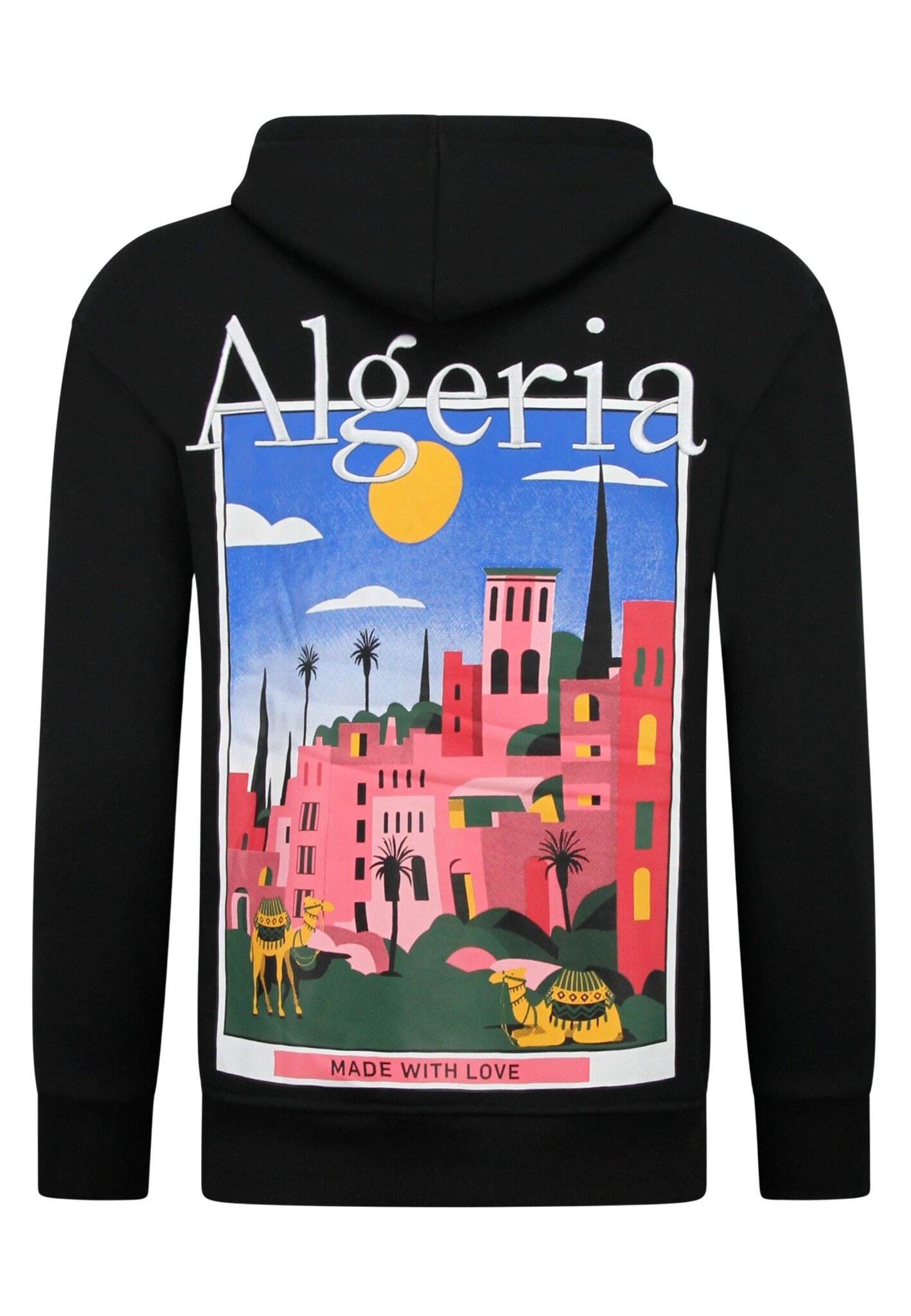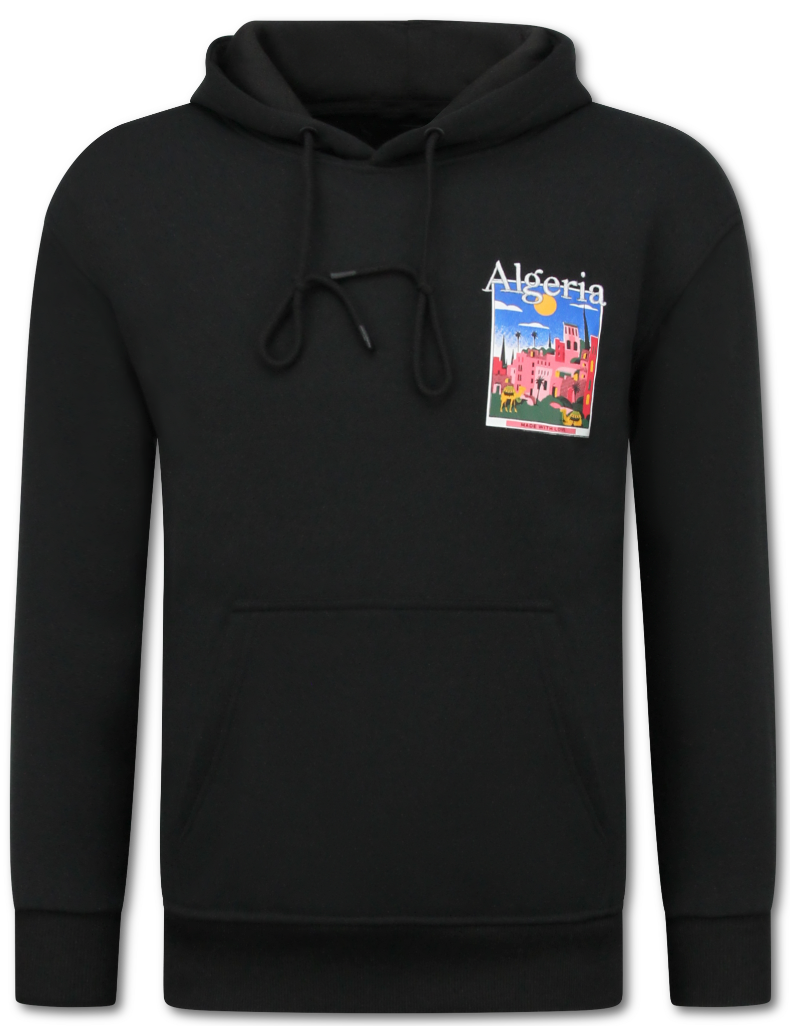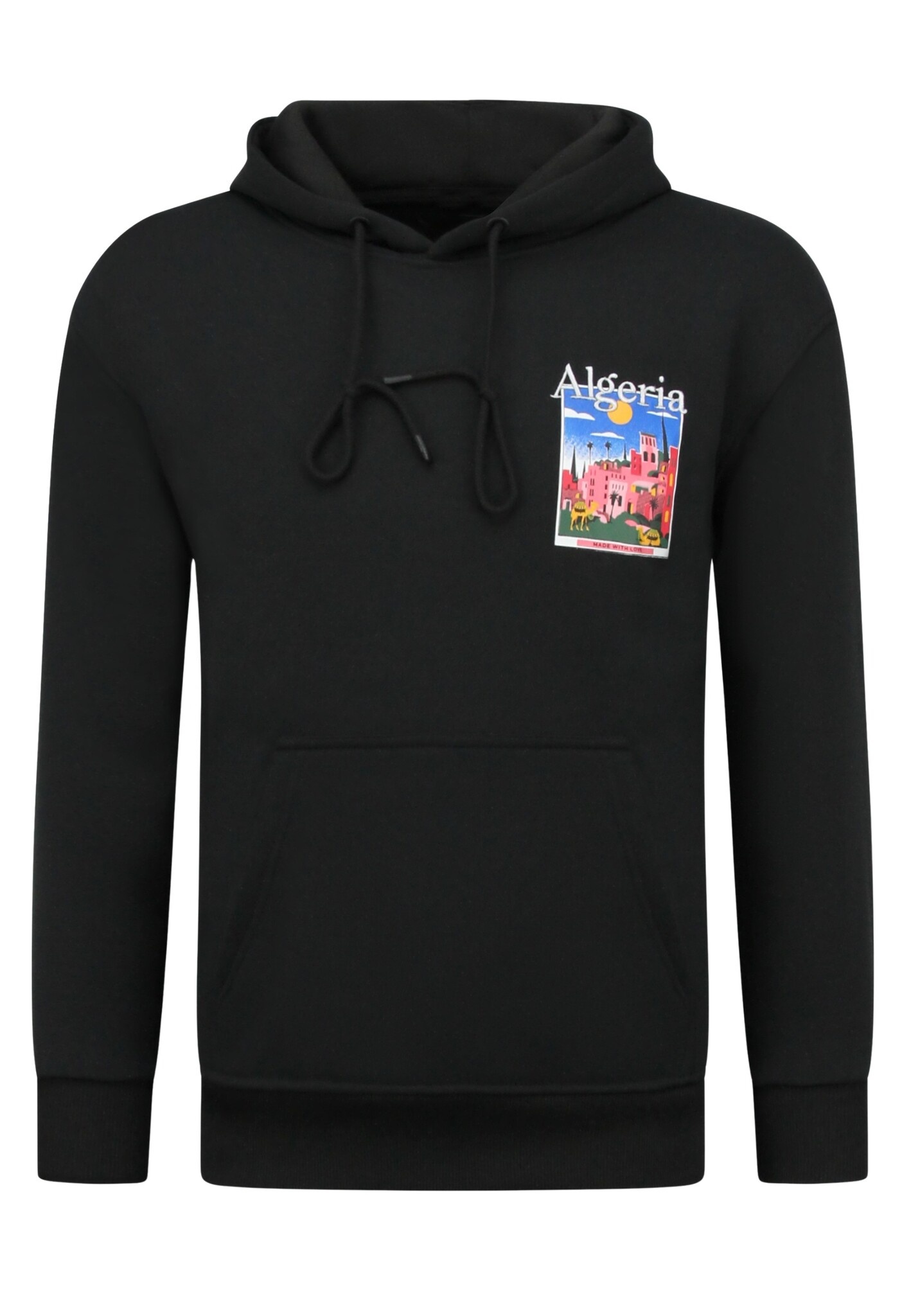 Sudadera con capucha extragrande para hombre - Estampado de Argelia - Tejido grueso - 5813 - Negro
