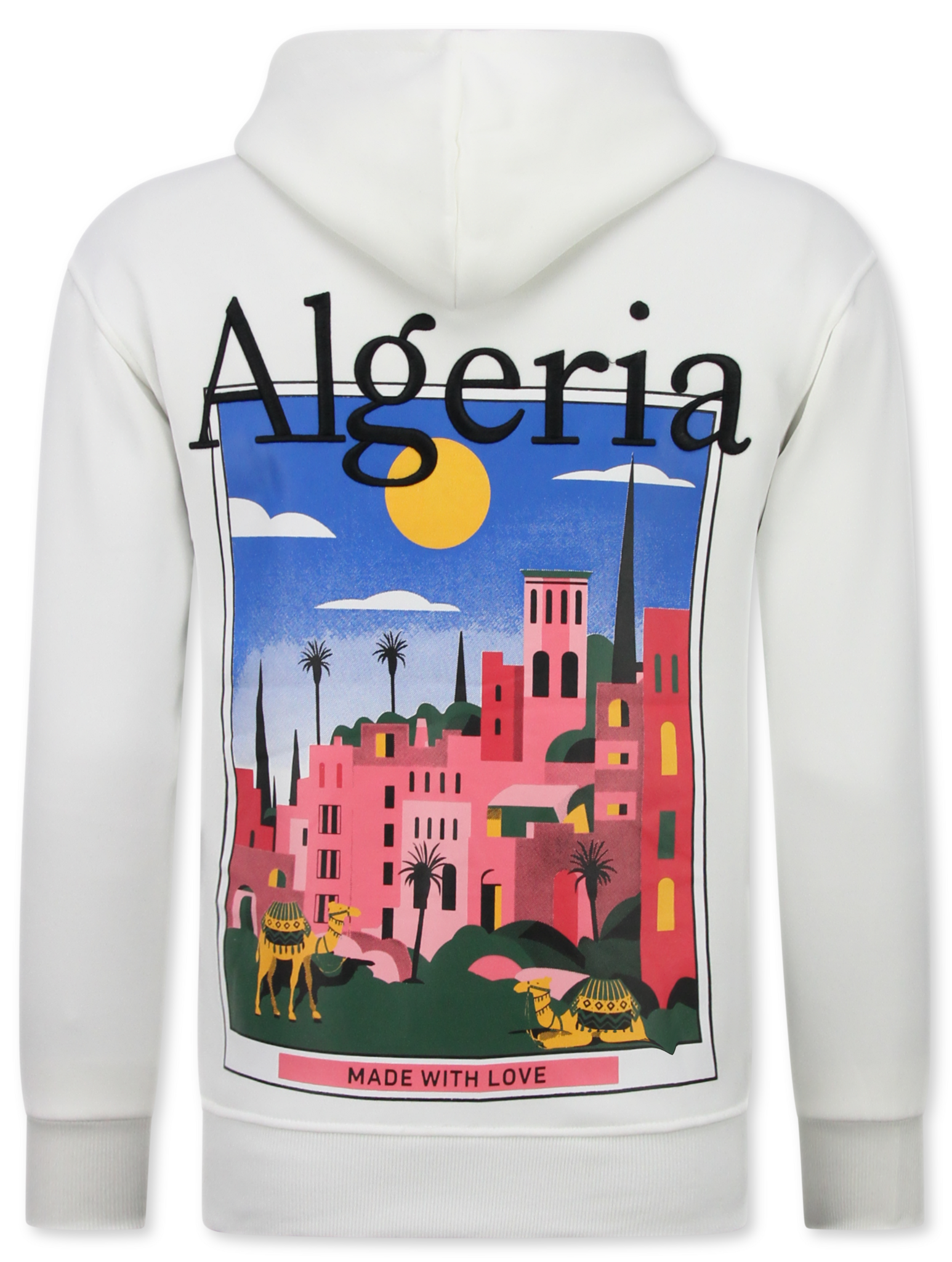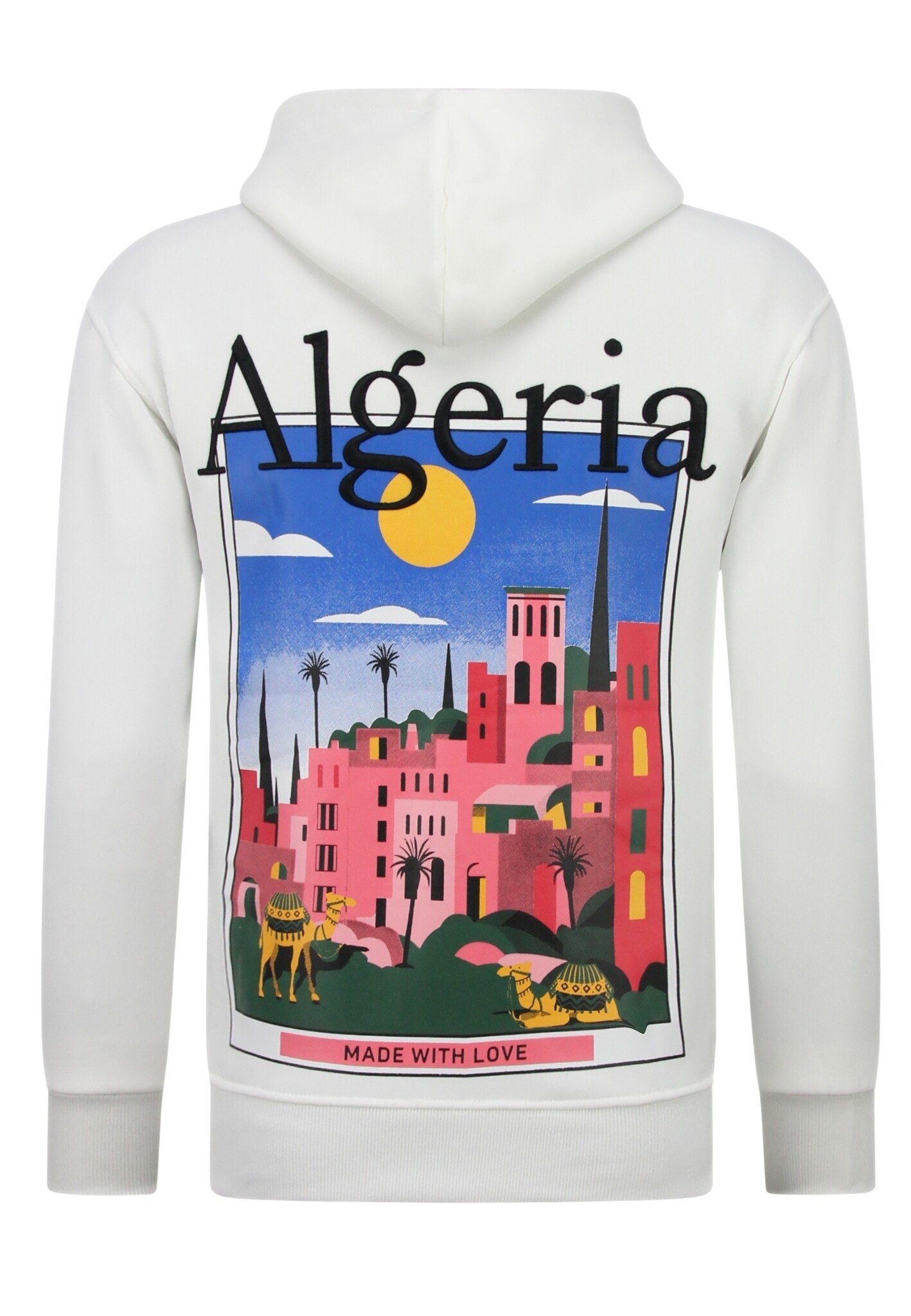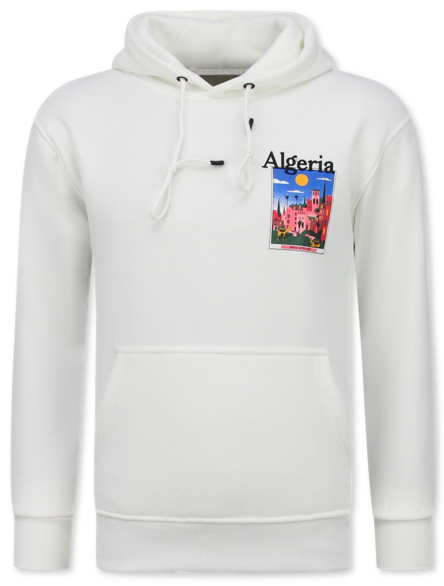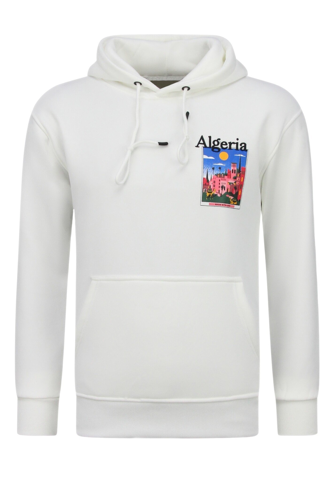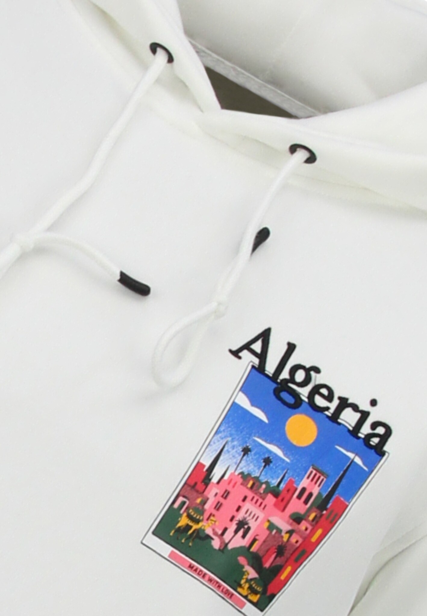 Sudadera con capucha extragrande para hombre - Estampado de Argelia - Tejido grueso - 5813 - Blanco