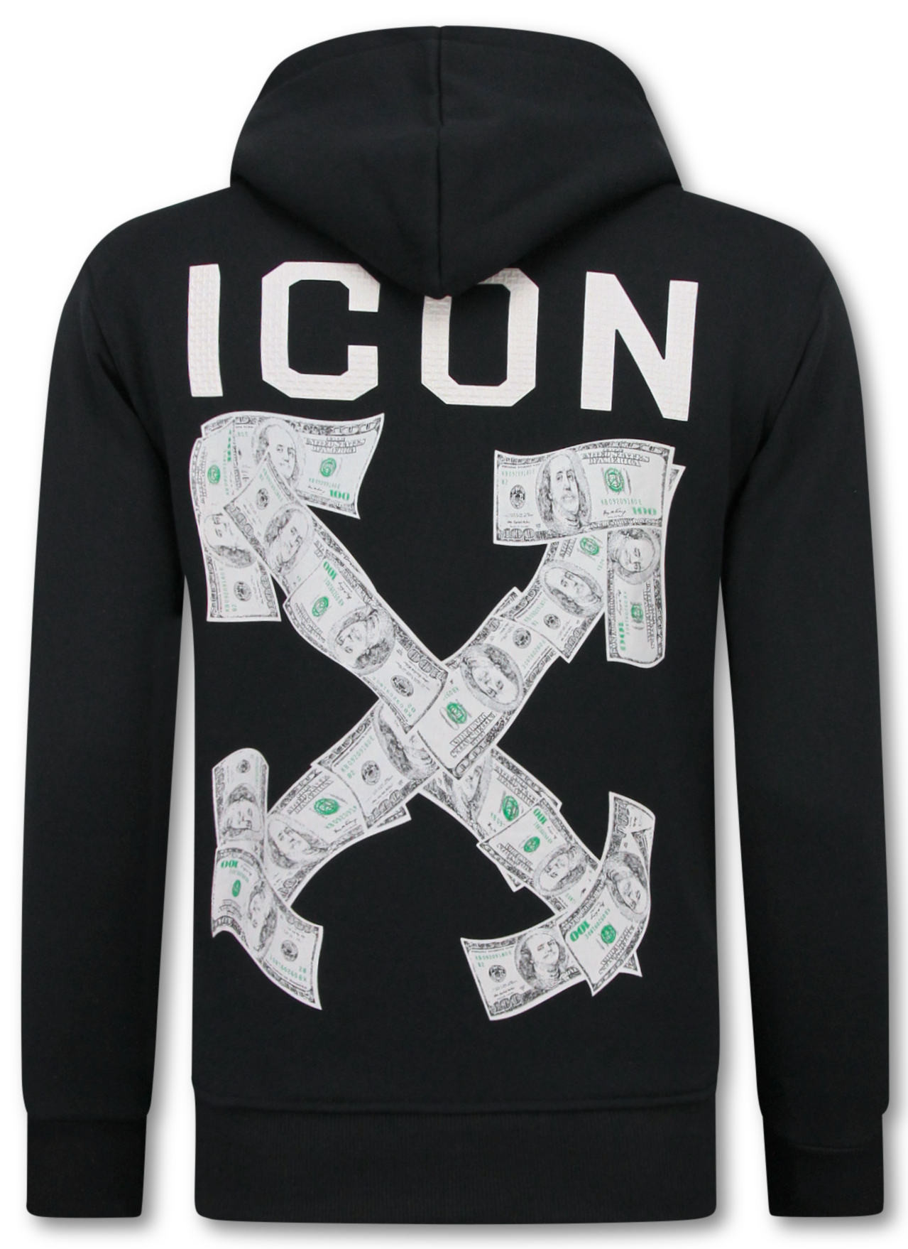 Sudadera con capucha extragrande para hombre - Estampado ICON Dollar - Tejido grueso - 5567 - Negro