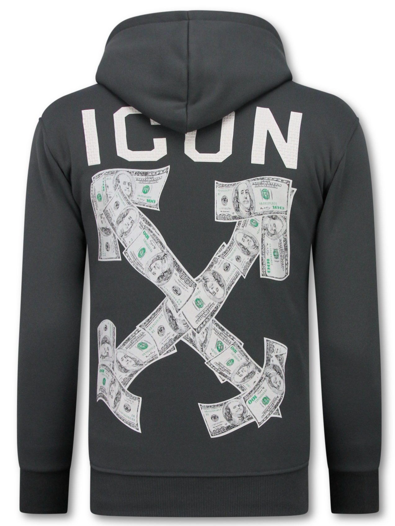 Sudadera con capucha extragrande para hombre - Estampado ICON Dollar - Tejido grueso - 5567 - Gris