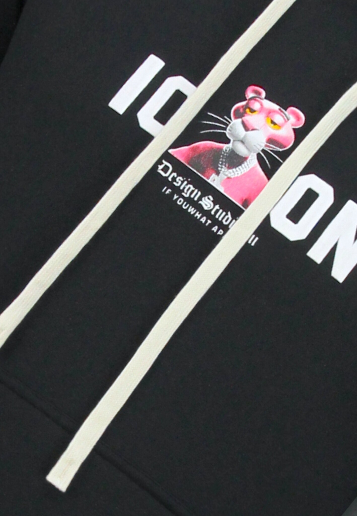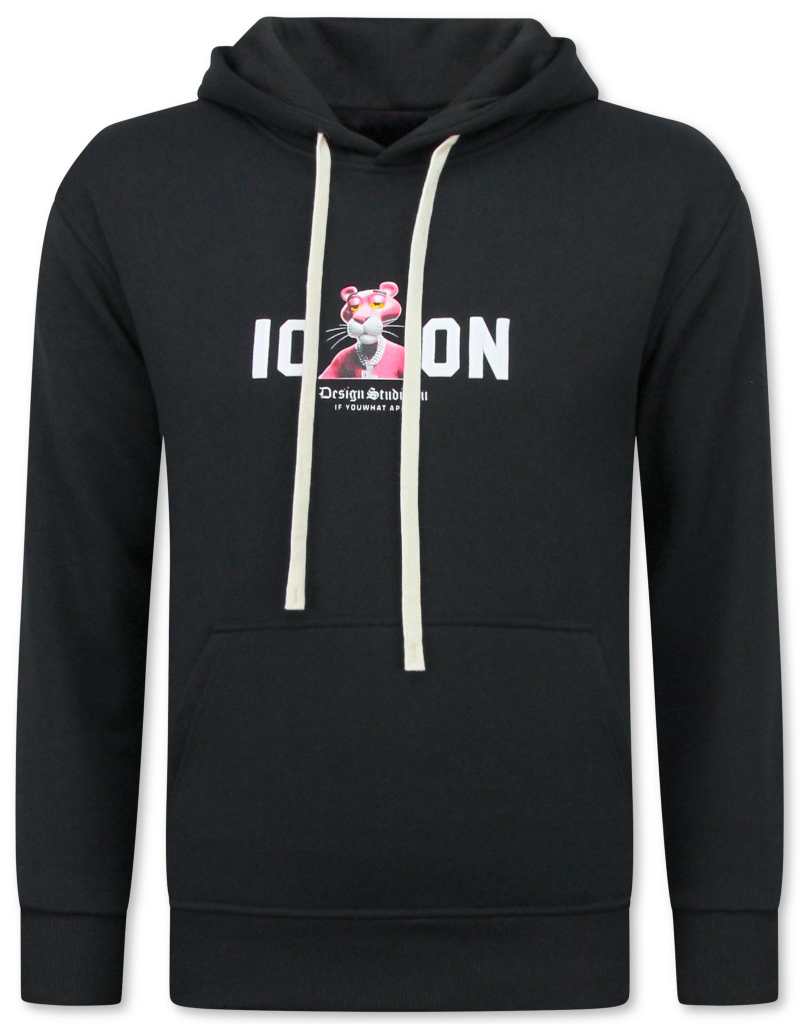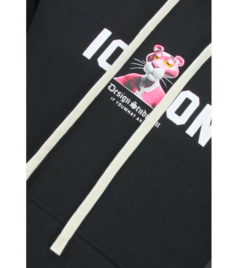 Sudadera con capucha extragrande para hombre - Estampado de leopardo ICON - Tejido grueso - 5795 - Negro