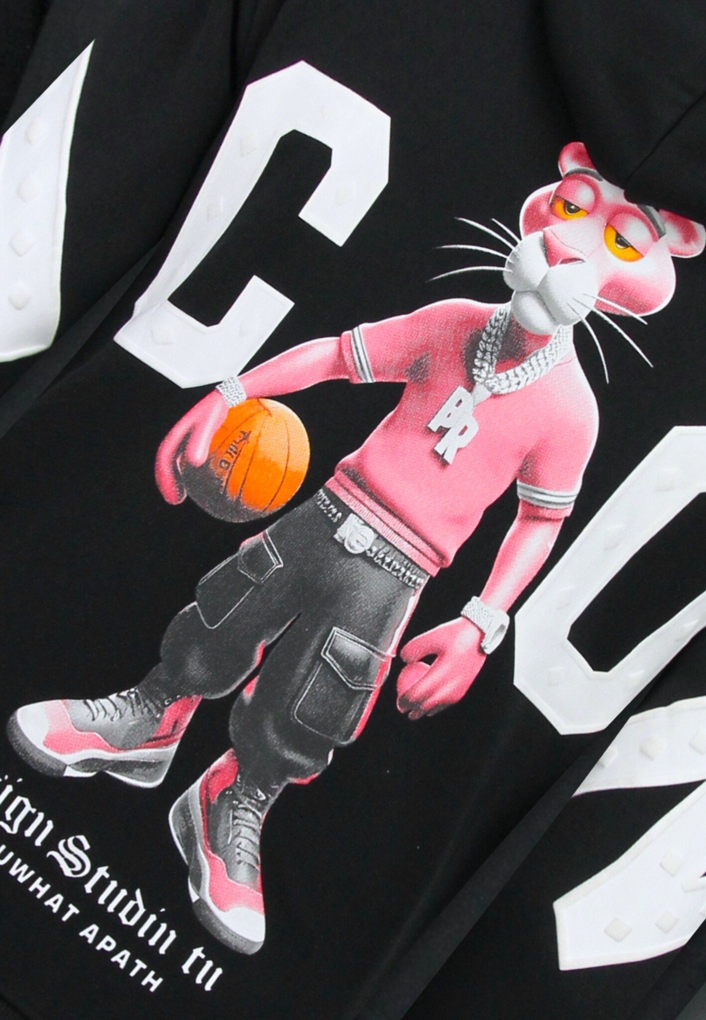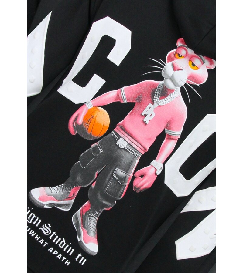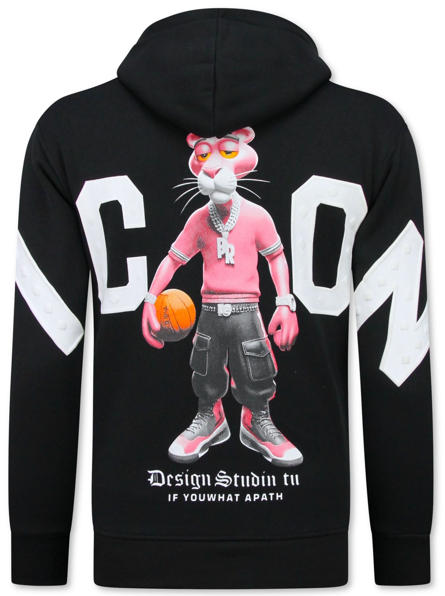 Sudadera con capucha extragrande para hombre - Estampado de leopardo ICON - Tejido grueso - 5795 - Negro