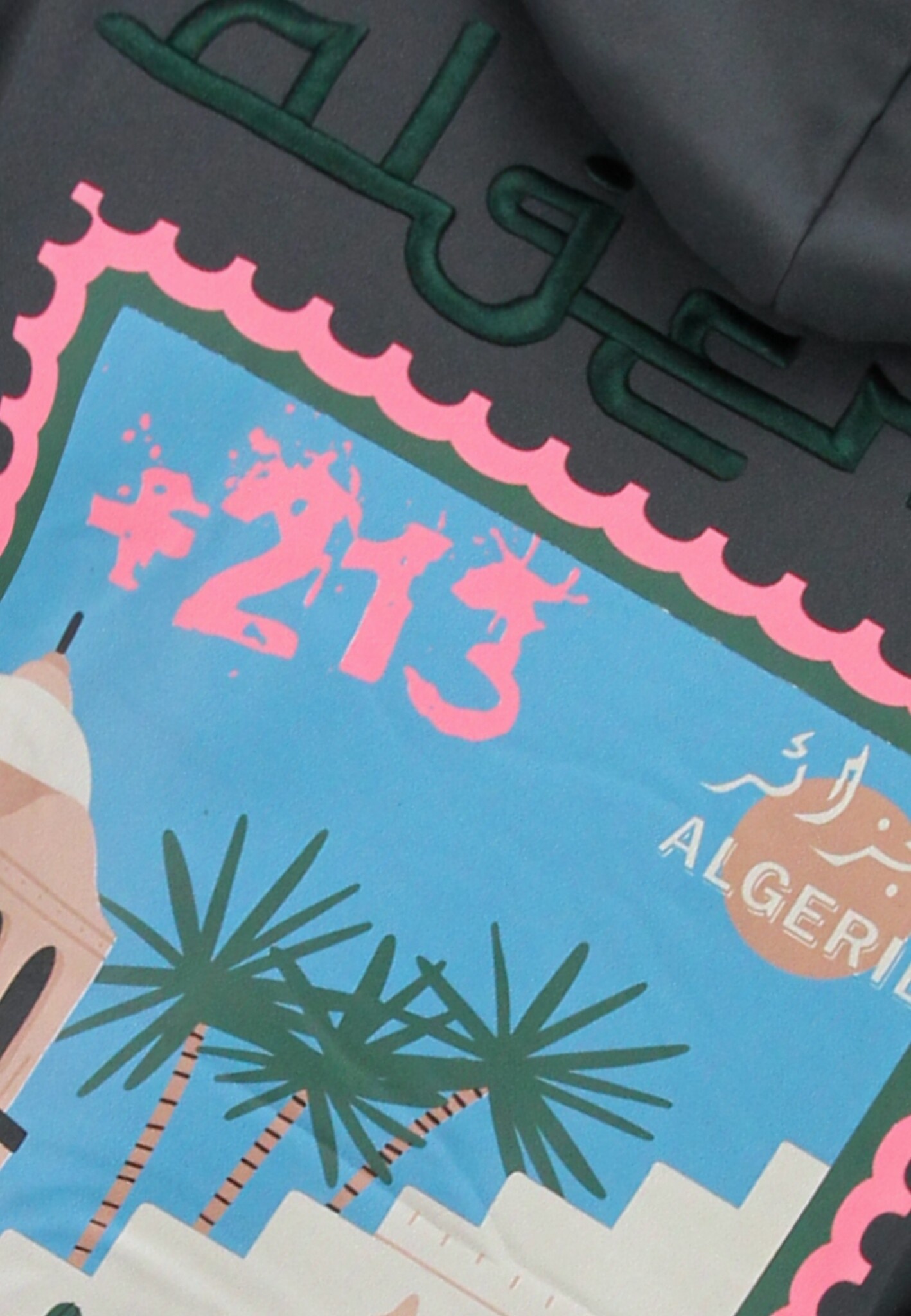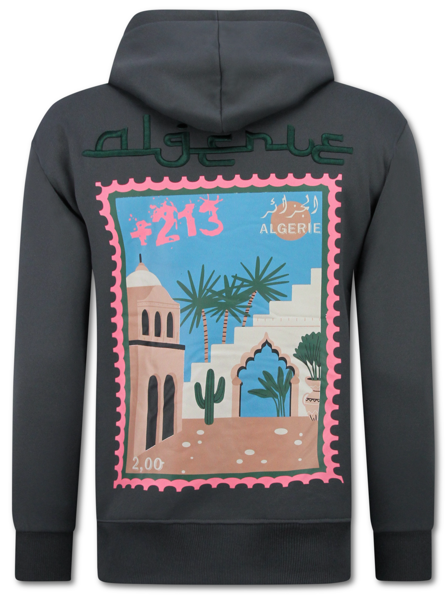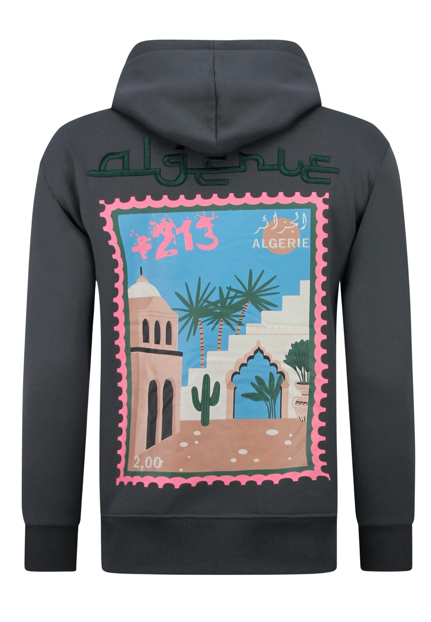 Sudadera con capucha extragrande para hombre - Estampado de Argelia - Tejido grueso - 5816 - Gris