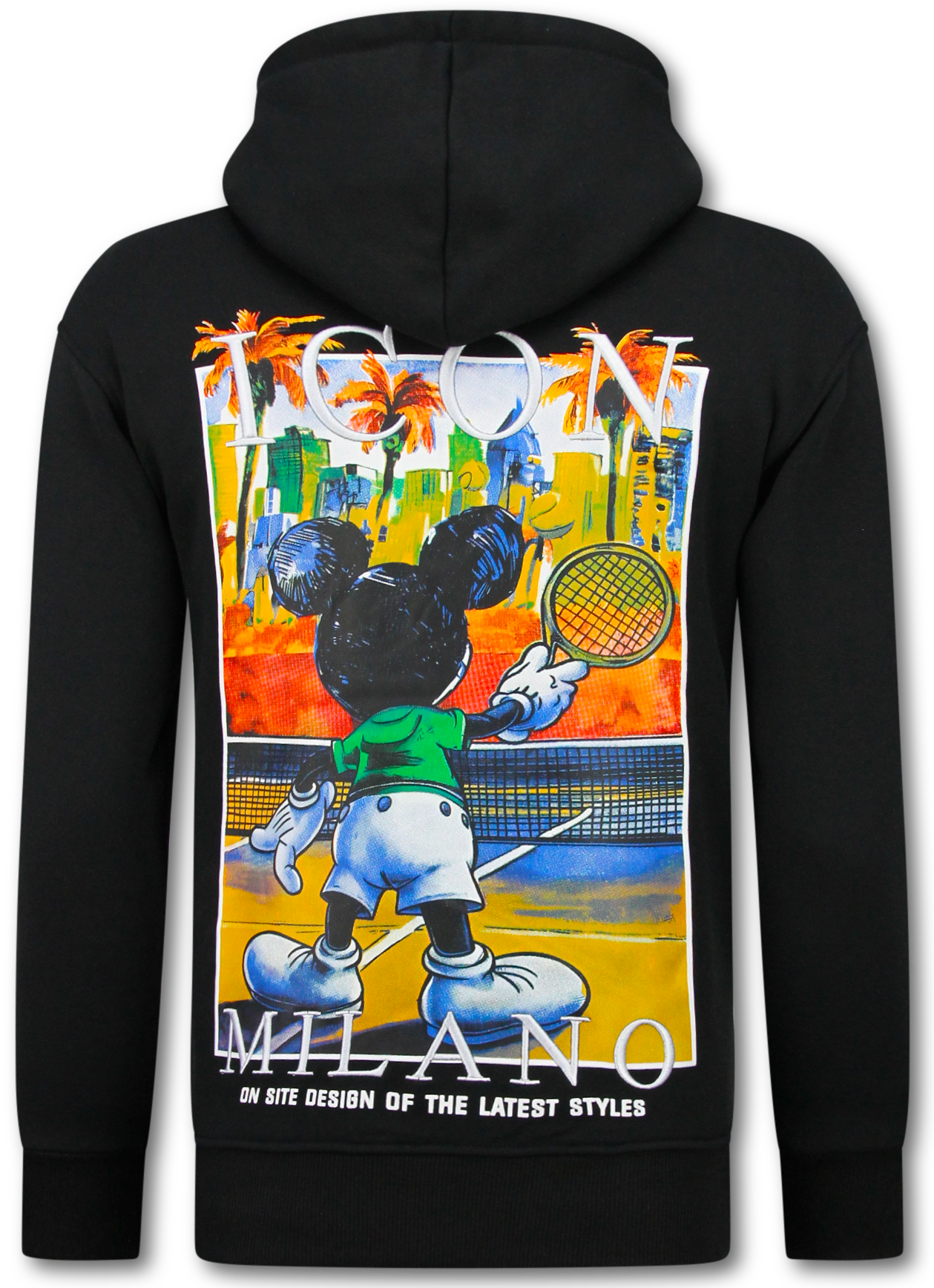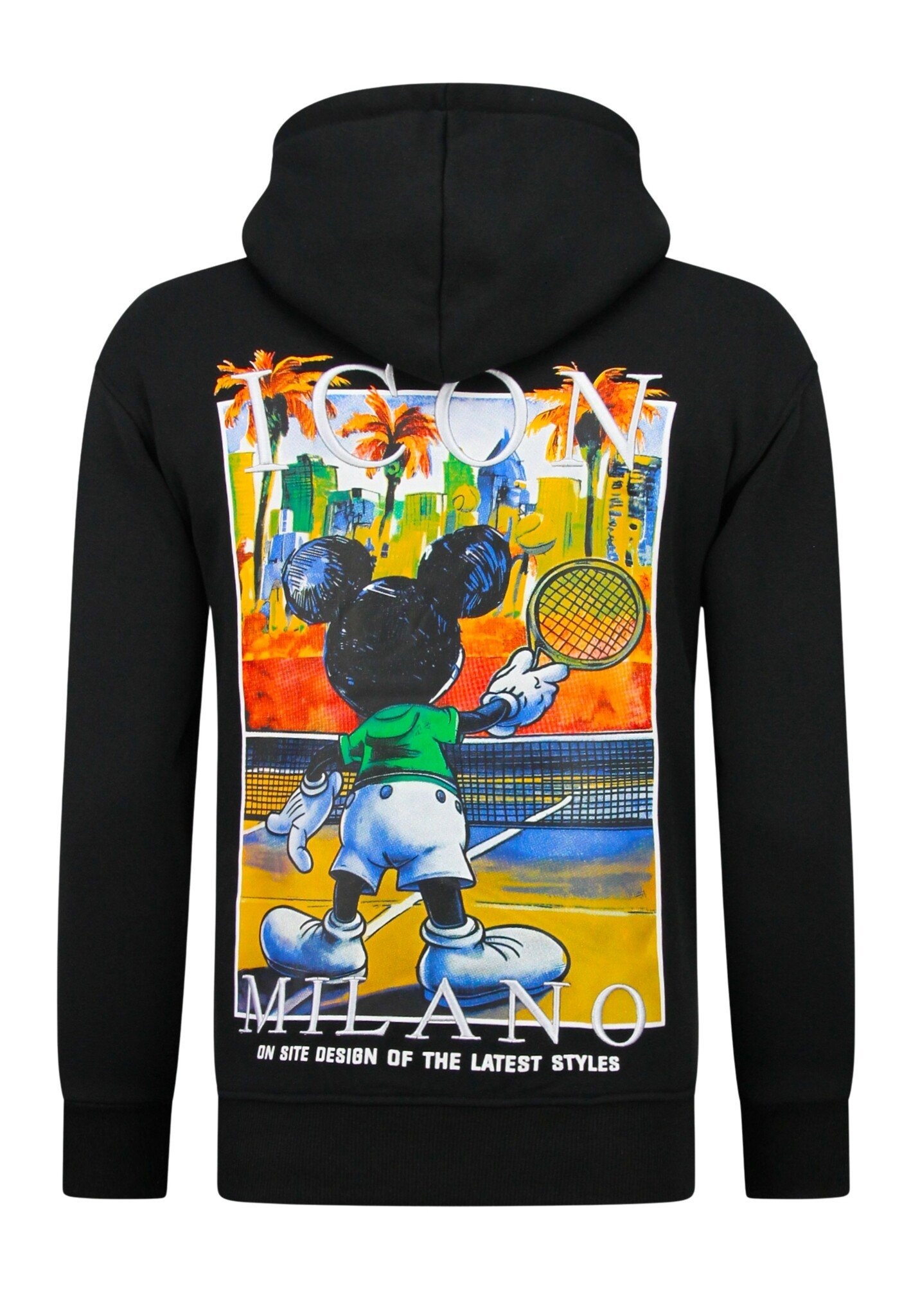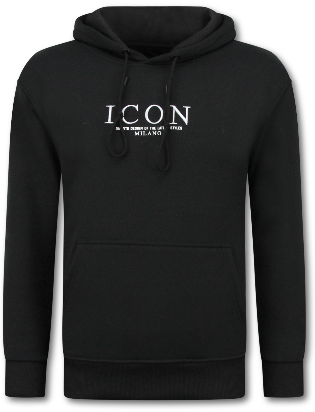 Sudadera con capucha extragrande para hombre - Estampado ICON Milano - Tejido grueso - 5812 - Negro